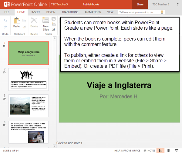 When the activity is over, the PowerPoint can be shown to everyone on a projector screen or embedded in a class website.