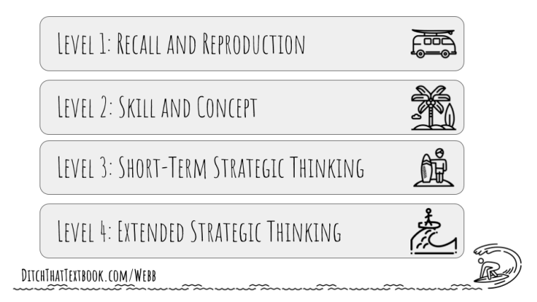 Webb’s Depth of Knowledge (DoK) focuses on the TYPE OF THINKING, not on the activity. It addresses COMPLEXITY of thinking, not difficulty.